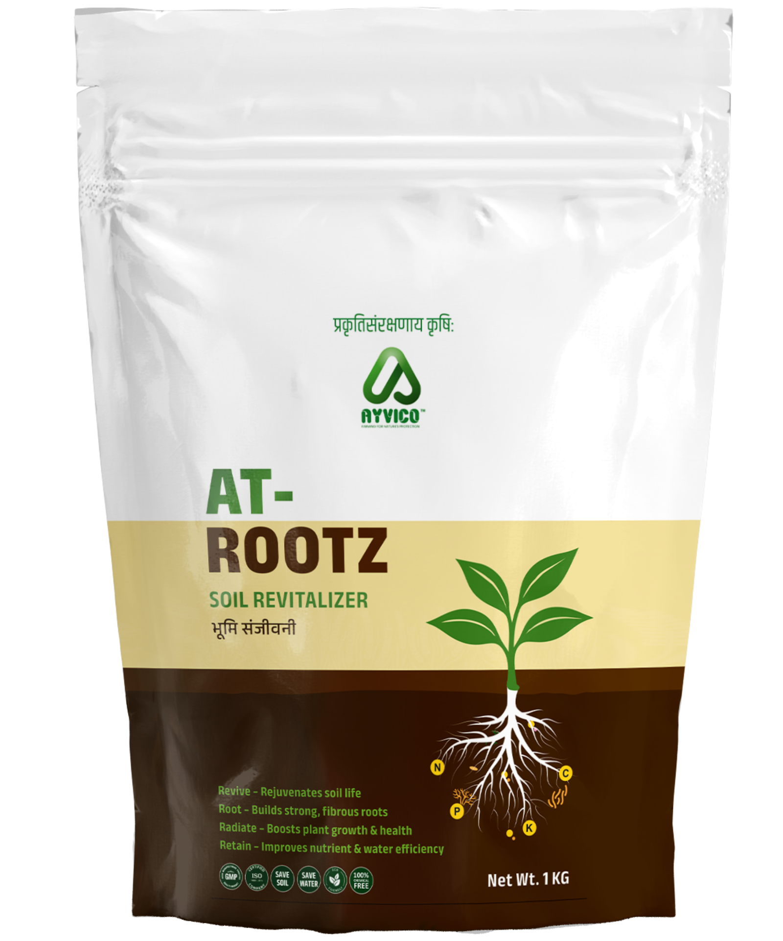 AT-ROOTZ rejuvenates soil fertility, enhances nutrient uptake, promotes robust root-shoot growth, and aids detoxification of chemically stressed soils—supporting sustainable, long-term productivity.